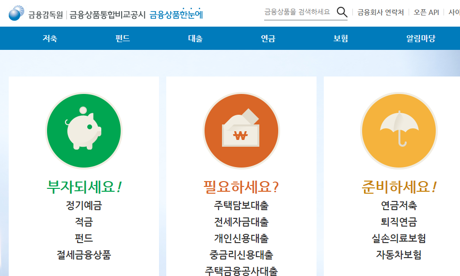 - 금융감독원 금융상품 한눈에 사이트