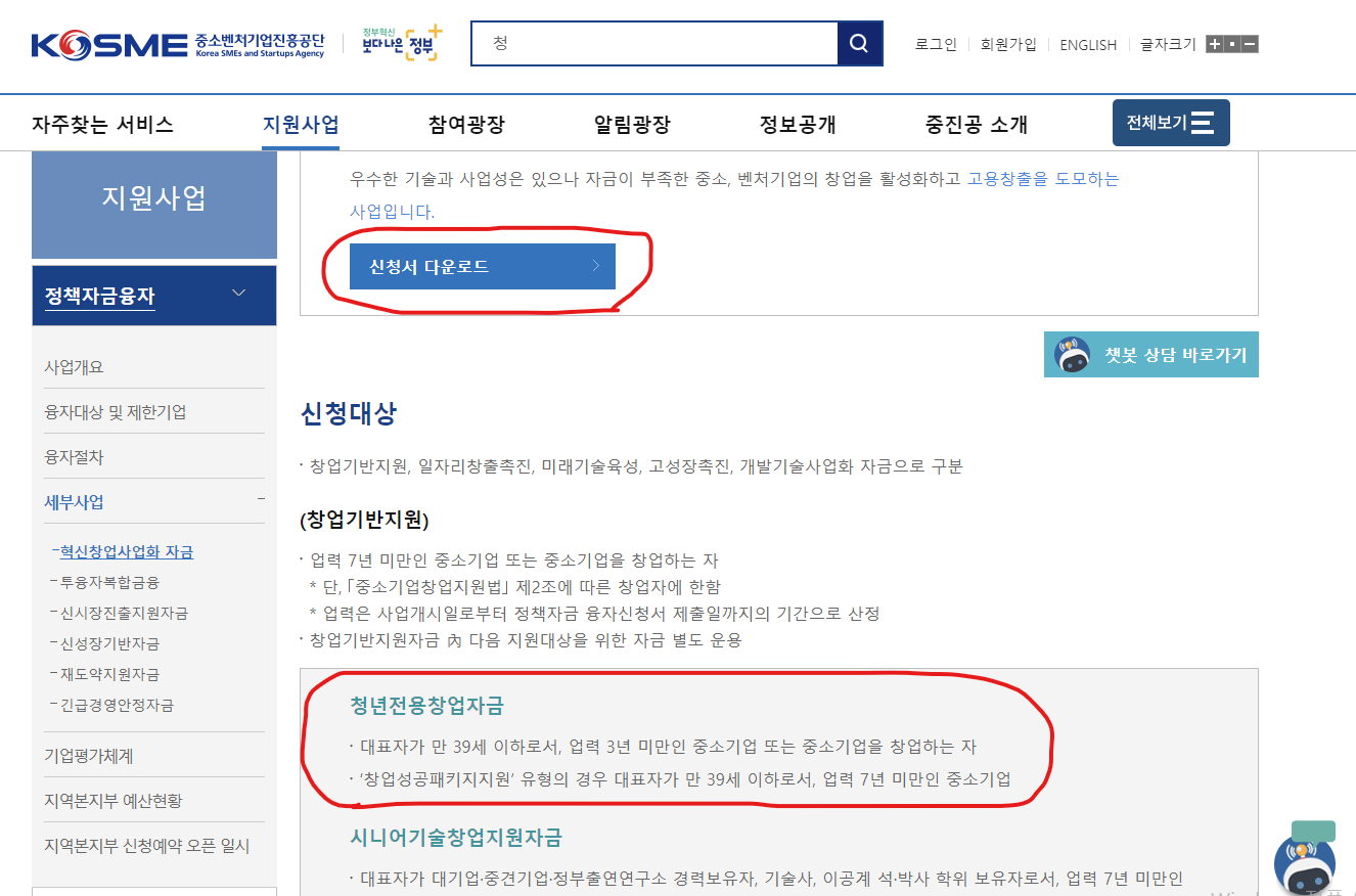 창업이라고 하지만 업력 3년 미만이고 대표가 만 39세 미만이면 청년전용창업자금 융자가 가능합니다.